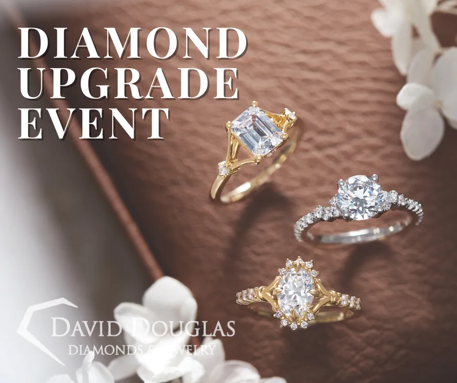 Upgrade your existing natural diamond engagement ring with 100% Trade-in Value. For natural diamonds originally purchased from David Douglas, clients receive full trade-in value plus $500 off a new diamond upgrade. Lab-grown diamonds excluded.